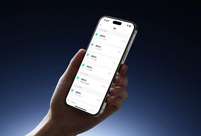 警報・通知/オートロック設定/緊急指紋・パスワード/データの保護・保存/締め出し防止と、あらゆる方面のセキュリティ対策と防犯対策で絶対的な安心を実感していただけます。アプリからドアロックの開閉状態や履歴、バッテリーの残量などを随時確認でき、ドアが開閉されるとアプリに通知を送信、半ドア状態になると警報が鳴ります。また、ストーカーにつけられているなどの危険時に、予め設定しておいた緊急指紋/緊急パスワードで鍵を開けると、アプリ通知で家族に危険をお知らせ。バッテリー残量が低下すると、充電を促す通知がアプリに届きます。