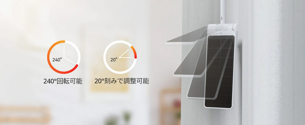 SwitchBot ソーラーパネル Switchbot カーテンシリーズに利用できる専用ソーラーパネル。 【カーテン2のソーラーパネルとの比較】 1)屋内でも効率よく充電: 容量が増え、1日の充電量が2倍になりました。 2)調整可能なデザイン: パネルの角度を調整することで、より良い直射日光を受けることができます。 3)取り付け可能: カーテン3と連動してソーラーパネルが動き、より多くの光を受けることができます。 4)自動充電: 設定した時間帯になると、太陽光が強い場所に自動的に移動して充電し、充電が終わると自動的に充電終了地点に戻ります。 ※画像はイメージです。